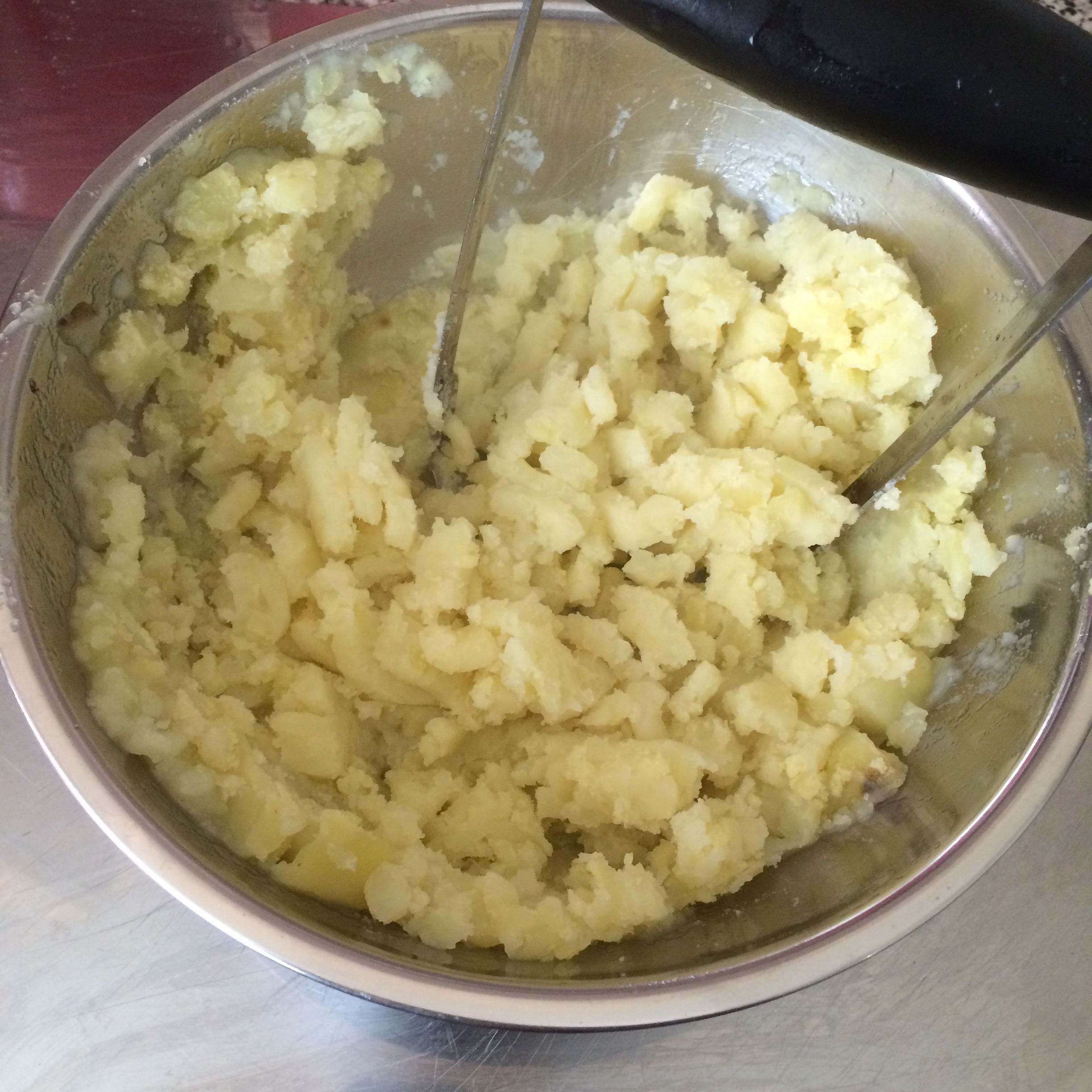 Steam your potatoes and mash until fluffy – oh this part is such fun!