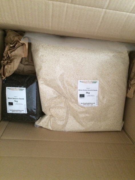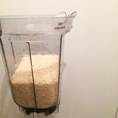 To make tahini you simply need to blend sesame seeds! Here we go, half the jug full…