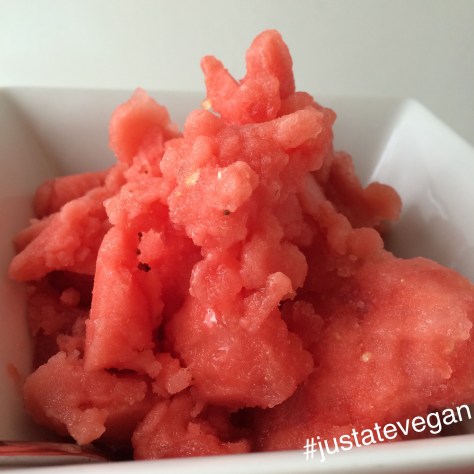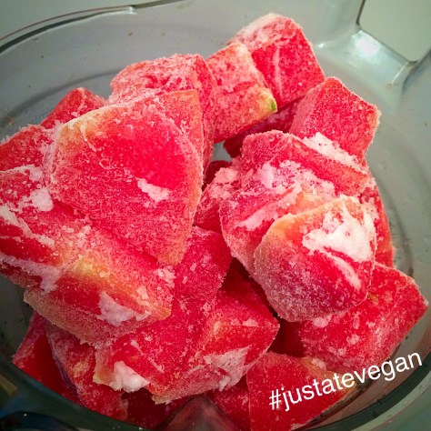 • Do not feel you need to completely blend the ice crush mixture, it can be rather appetising to leave a few frozen watermelon chunks in your sorbet!