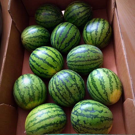 • Chop melon into bite size chunks (We used 3-4 mini watermelons, though 1 large melon would work also.)