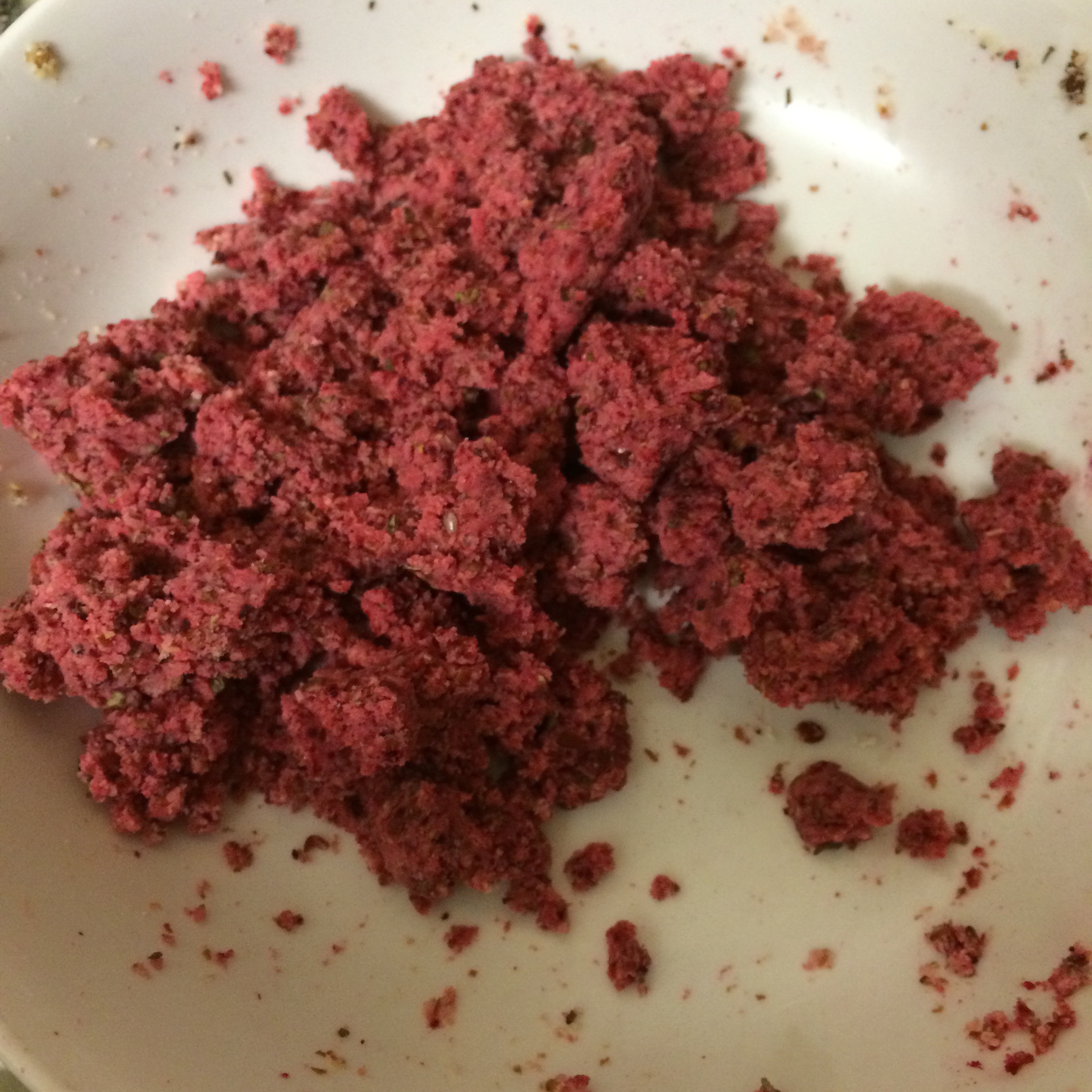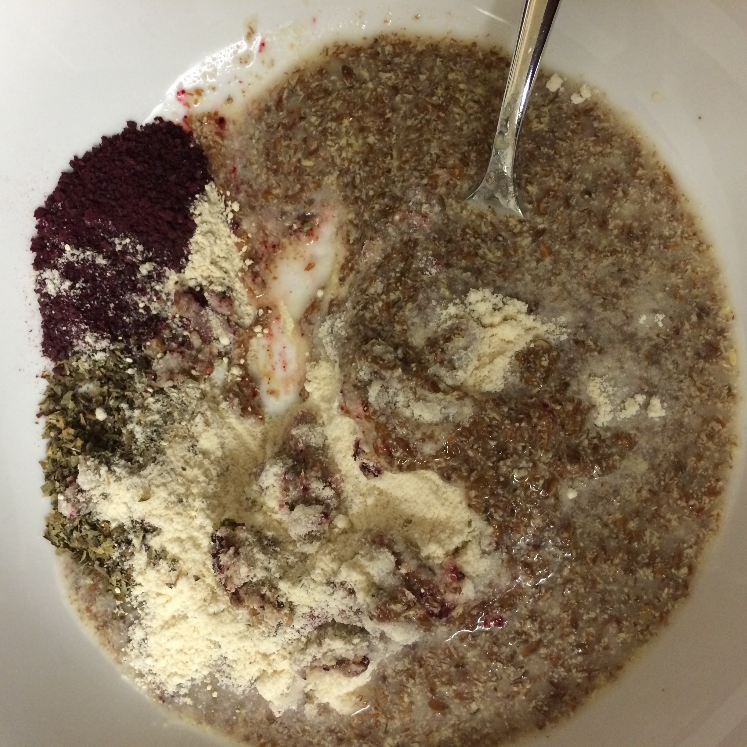 Add flax eggs and mix well until consistency feels like a sticky dough.