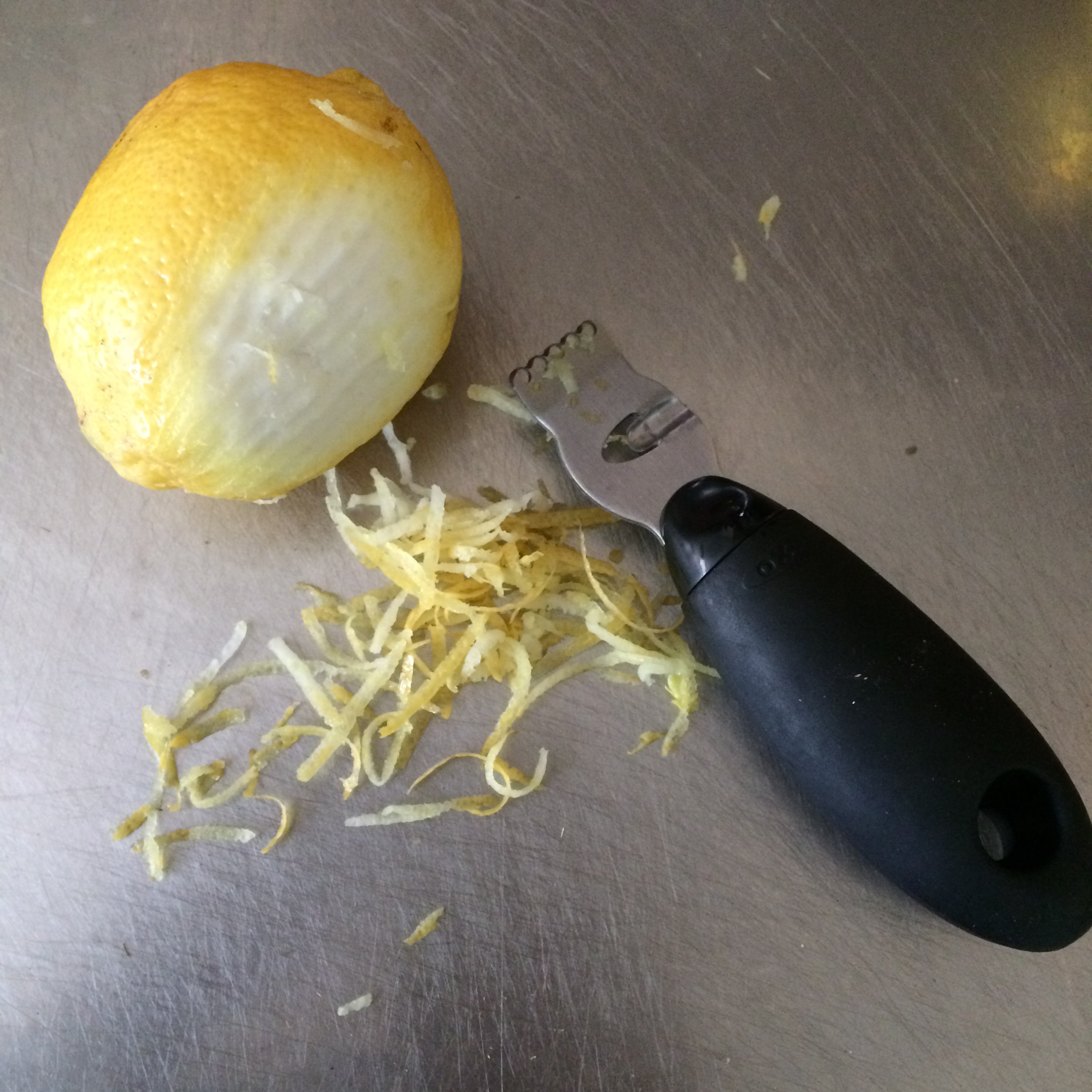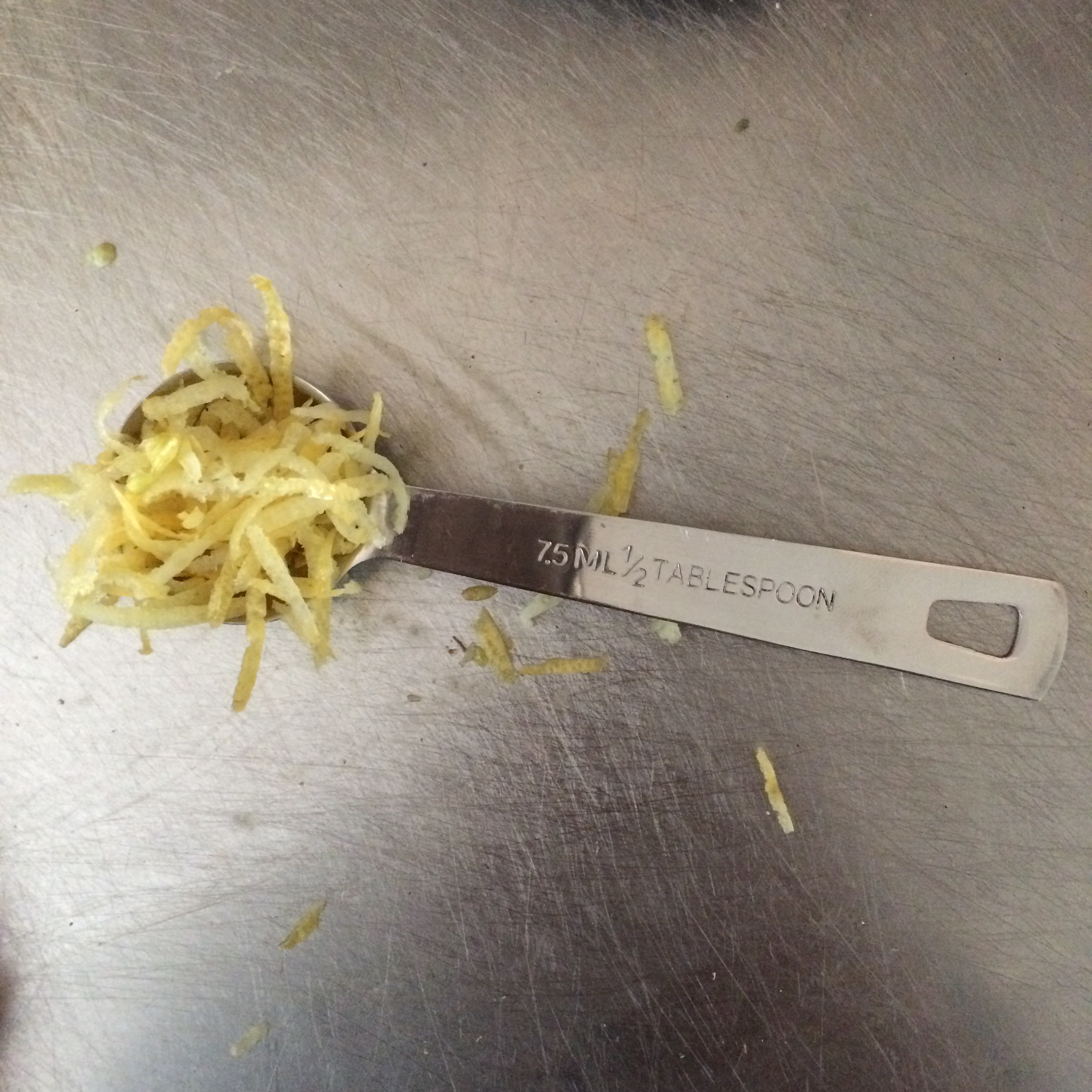 …2 tablespoons of freshly squeezed lemon juice, which we measured into our most convenient  Joie Lemon Juice Reamer …