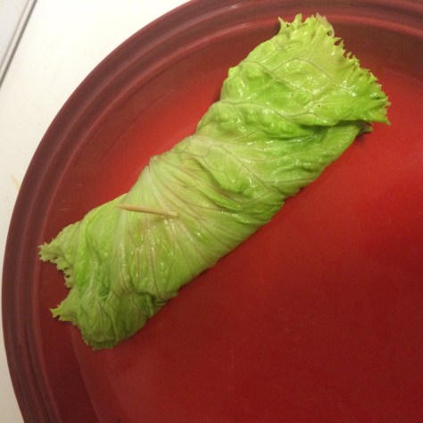 Sprinkle a little salt and pepper for extra spice and roll the green leaf up like a wrap, oh it looks so nice!